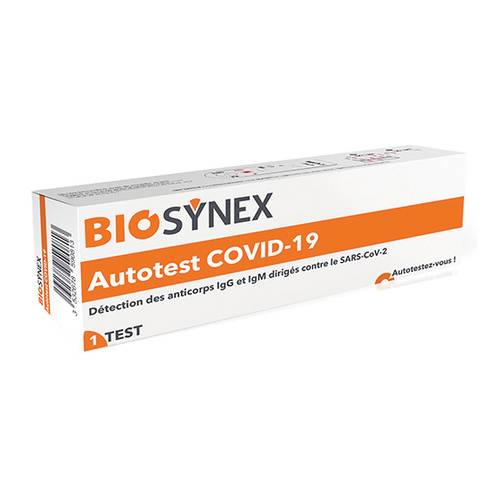 Biosynex autotest COVID-19 è un autotest immunocromatografico rapido per la rilevazione qualitativa degli anticorpi IgG e IgM contro il SARS-CoV-2 da una goccia di sangue capillare. Il test è costituito da antigeni di SARS-CoV-2 (chiamato RBD - Receptor Binding Domain) associati a particelle di oro colloidale in grado di rilevare gli anticorpi IgG e IgM anti SARS-CoV-2. Questo autotest diagnostico permette di sapere se si è entrati in contatto con il virus responsabile del COVID-19. Biosynex autotest COVID-19 permette di identificare le persone che non sanno di essere state contagiate perché prive di sintomi oppure a causa della diagnosi errata dei sintomi presentati. Ciò significa che l’autotest può identificare le infezioni “silenziose”, oltre che le persone precedentemente malate e poi guarite. Il test deve essere utilizzato soltanto sugli adulti oppure sotto la supervisione di un adulto se effettuato su un bambino. È stato dimostrato che Biosynex autotest COVID-19 può iniziare a risultare positivo 13 giorni circa dopo la comparsa dei sintomi. Un risultato negativo di Biosynex autotest COVID-19 in una persona sintomatica non esclude un’infezione da COVID-19. In presenza di sintomi compatibili con il COVID-19, il risultato negativo deve essere confermato attraverso un secondo test, da farsi 11 giorni dopo il primo. Questo autotest non rileva la presenza del virus responsabile del COVID-19, bensì la risposta del sistema immunitario da parte di un paziente contro il virus del COVID-19.